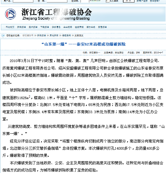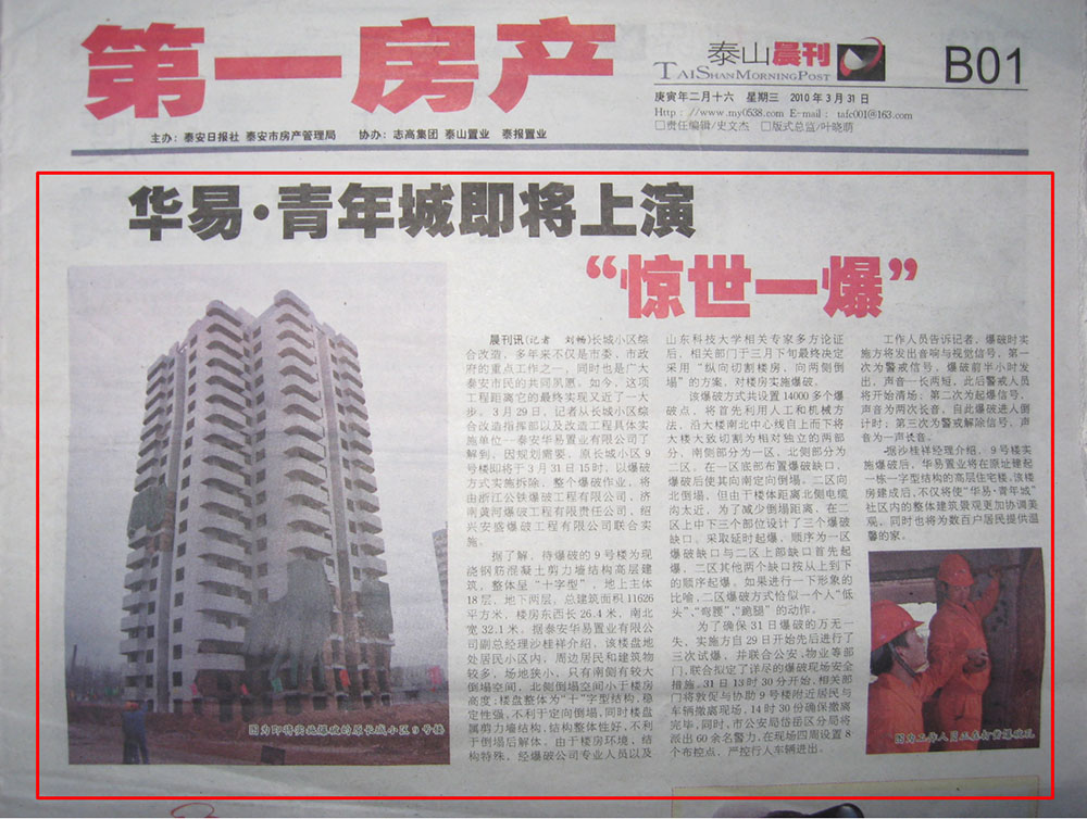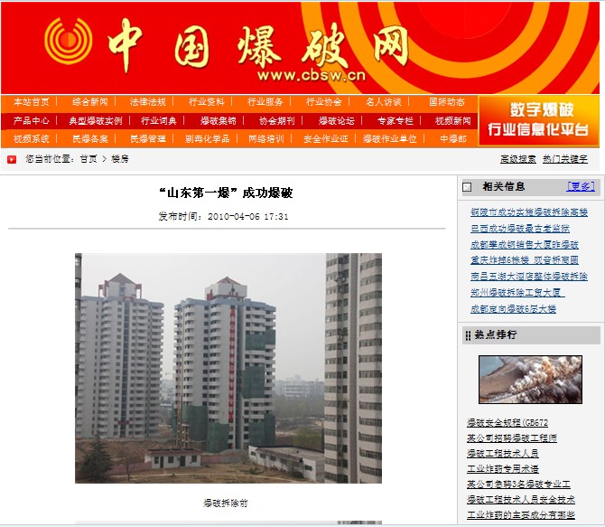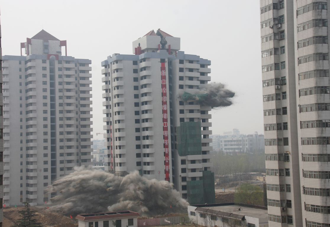 山東泰安華易青年城64米高樓A級(jí)爆破拆除工程